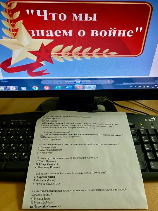 Для студентов групп ПБ-241, ТБ-222, ПБ-211, ПБ-212 кафедры защиты в чрезвычайных ситуациях в рамках воспитательной работы прошли кураторские часы «Что я знаю о Победе?». Преподаватели кафедры ЗЧС провели историческую викторину на углубление знаний о ключевых событиях войны, выдающихся личностях и героизме советских солдат.