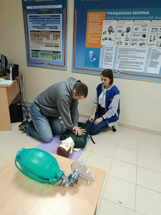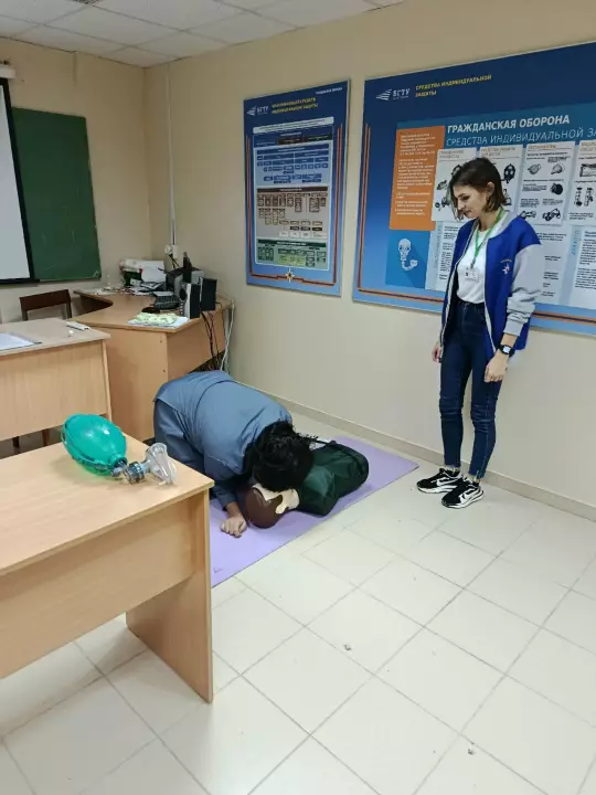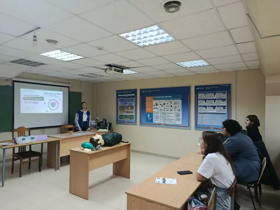 Доцент кафедры "Защита в ЧС", член Российского общества первой помощи Шатохина Марина Алексеевна провела для обучающихся колледжа высоких технологий (КВТ) мастер-класс по обучению навыкам оказания первой помощи при внезапной остановке сердца.