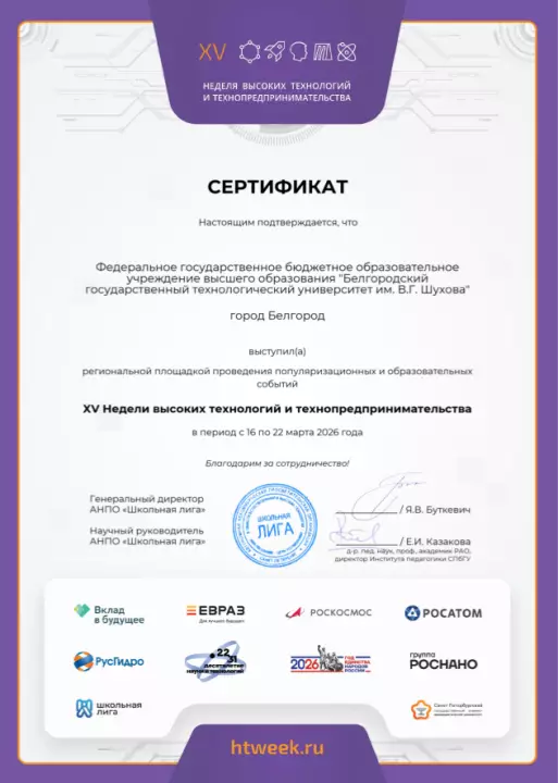 В рамках Недели на базе кафедры материаловедения и технологии материалов и Научно-инновационного образовательного центра ИНО и ОПЦ НКМ БГТУ им. В.Г. Шухова будут проведены мероприятия