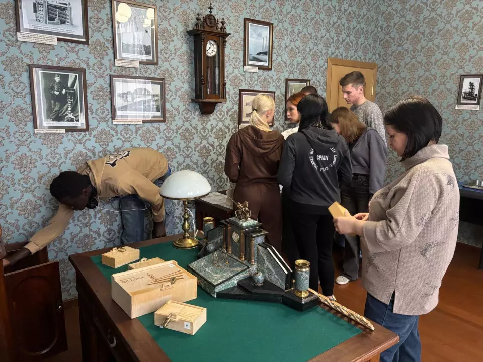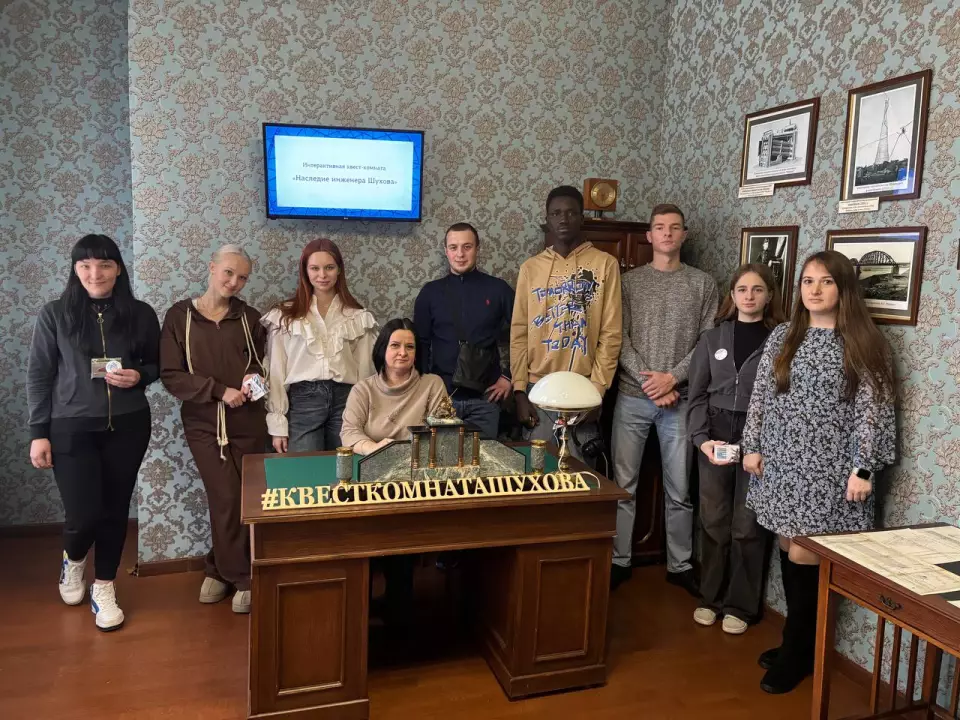 Студенты групп МВ-251 и МВ-241 посетили квест-комнату «Кабинет Шухова», расположенный в музейно-выставочном комплексе БГТУ им. В.Г. Шухова. Им предстояло посмотреть фильм о достижениях Шухова, ответить на вопросы и с помощью аудиогида отыскать заветные шкатулки на кодовых замках. Также на стенах в качестве подсказок размещены фотографии знаменитого инженера, иллюстрирующие сведения из его биографии.