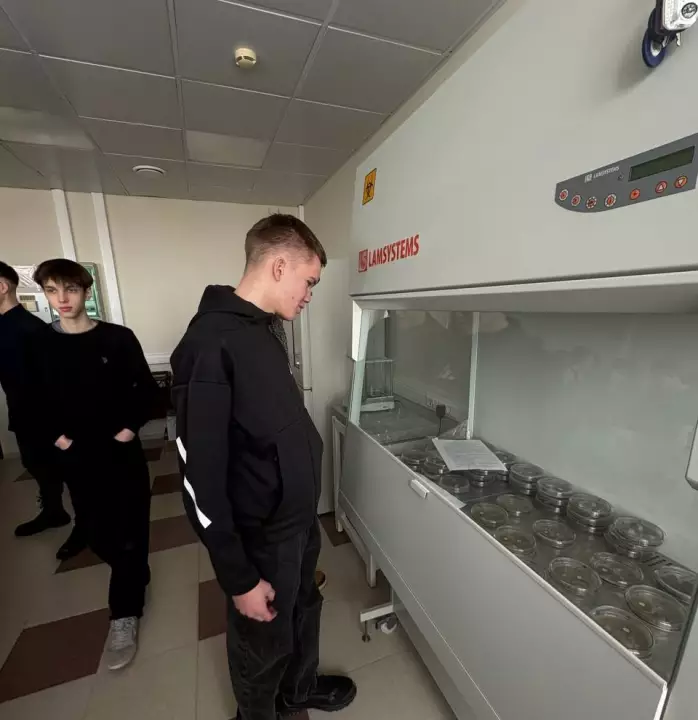В рамках практической части в лаборатории микробиологии учащиеся получили возможность познакомиться с основами микробиологических исследований. Под руководством преподавателя ребята самостоятельно подготовили микропрепараты бактериальных культур и изучили морфологические особенности микроорганизмов-биодеструкторов под микроскопом.