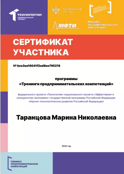 20 ноября кафедра МиТМ приняла участие в тренинге «Создай стартап за 6 шагов», проходящий на платформе университетского технологического предпринимательства. В ходе обучения были рассмотрены вопросы генерации и формирования продуктовых идей, разработка бизнес-модели стартапа, создание минимального жизнеспособного продукта (MVP). От нашей кафедры в тренинге приняли участие следующие студенты: Таранцова Марина МНС-251, Череповский Кирилл ТПМ-241, Беляева Анастасия ТПМ-241, Огурцова Полина МВ-241, Кобзев Вадим МНС-241, Смирнов Михаил ТПМ-221, Крутилов Дмитрий ТПМ-221, Мишуров Вячеслав МВ-251. Все участники получили сертификаты о прохождении обучения. За активное участие Таранцова Марина награждена брендированной бутылочкой и электронной книгой «Спроси маму».