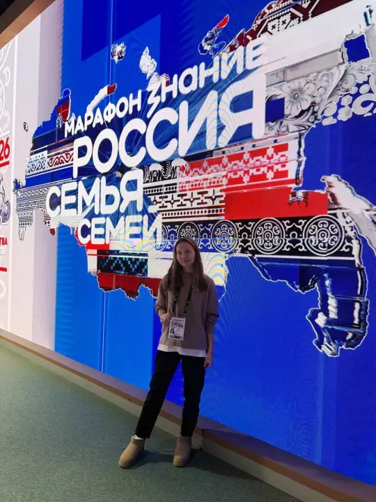 Студентка кафедры ТЦКМ Валерия Каткова, стала участницей марафона от Российского Общества "Знание" - "Россия - семья семей", проходившего 5 февраля в Москве в Год единства народов России! Валерия поделилась с нами яркими впечатлениями: "Этот марафон стал для меня не просто мероприятием, а настоящим источником вдохновения, энергии и гордости за нашу страну, её героев, культуру и спорт. Я побывала на форуме "Страна Героев", где царила невероятная атмосфера: