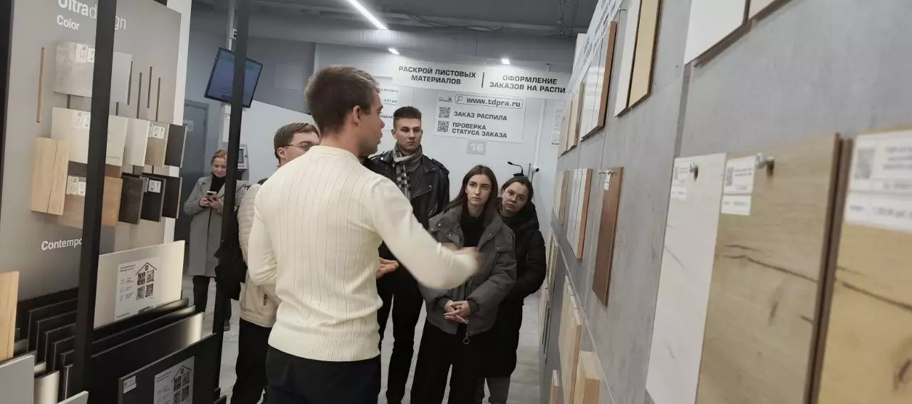 Студенты четвертого курса посетили ТВЦ "Потатушкиных" с целью углубленного ознакомления с процессами изготовления фурнитуры, фасадных элементов и мебельных изделий.