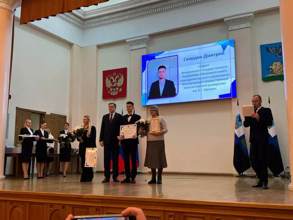20 ноября состоялась торжественная церемония награждения именными стипендиями губернатора Белгородской области. В числе награжденных был студент четвертого курса Скирдин Дмитрий, удостоенный сертификата и стипендии в номинации «За достижения в науке». Кроме того, были вручены премия, сертификат и благодарность за подготовку студента Шорстовой Елене Степановне, кандидату технических наук, доценту кафедры теоретической механики и сопротивления материалов.