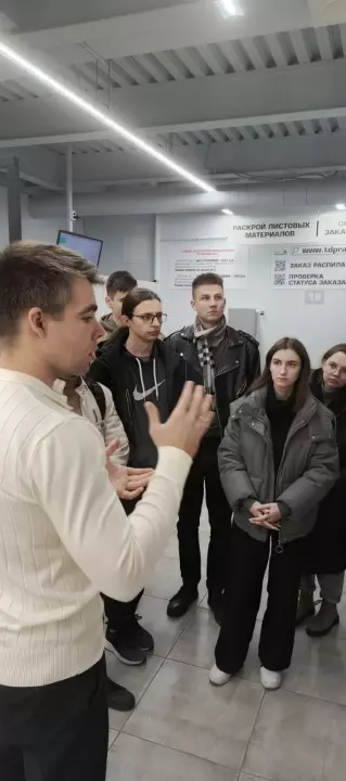 Студенты четвертого курса посетили ТВЦ "Потатушкиных" с целью углубленного ознакомления с процессами изготовления фурнитуры, фасадных элементов и мебельных изделий. В рамках экскурсии руководитель отдела розничных продаж, Валентин Григорьев, предоставил детальный обзор производственных технологий и продемонстрировал ключевые этапы производственного цикла.