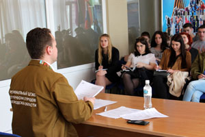 Андрей Евгеньевич Ватулин, командир регионального штаба студенческих отрядов Белгородской области, открыл мероприятие и после приветствия участников прочитал лекцию о корпоративной культуре молодежного движения.