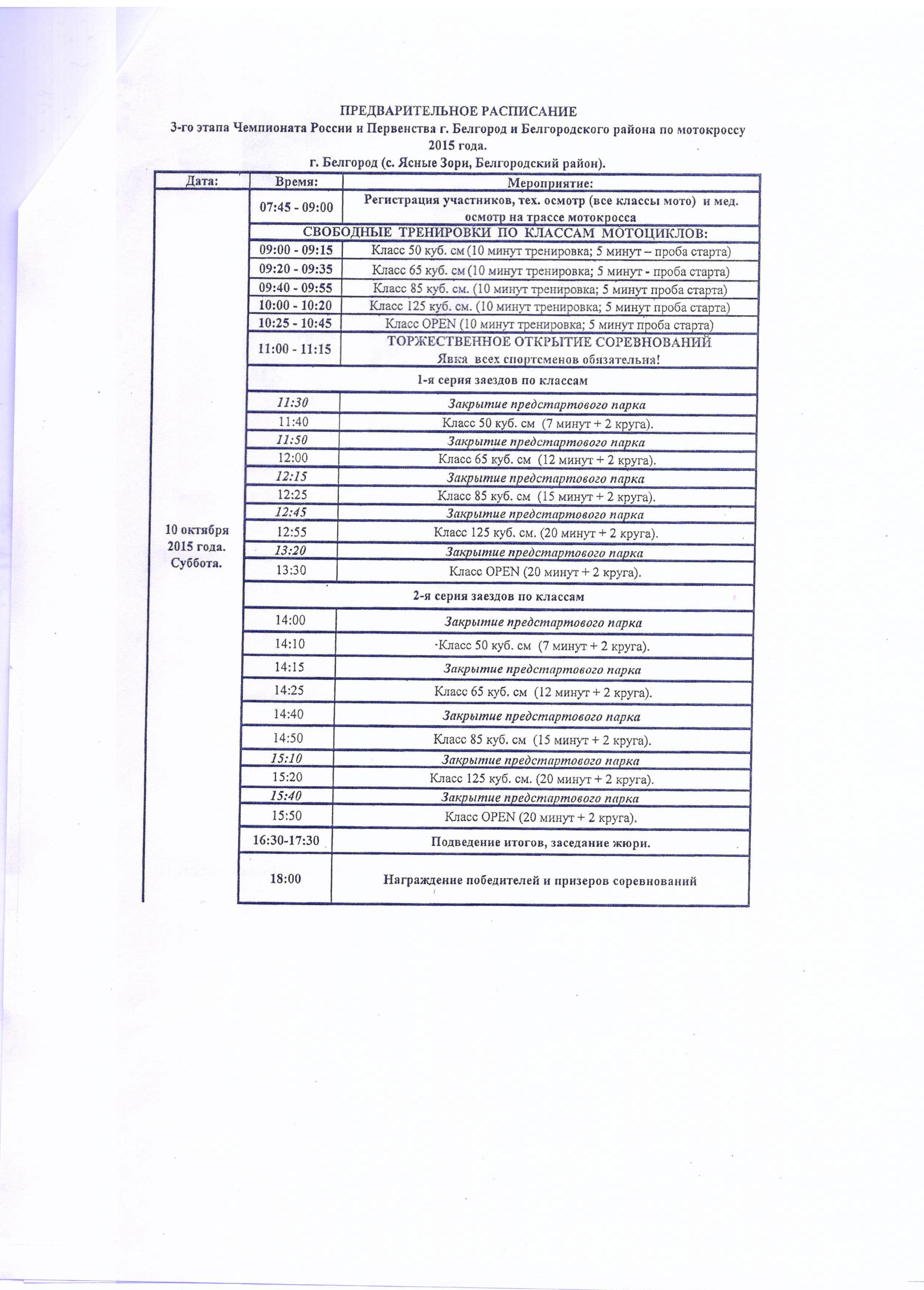 10 октября в п. Ясные Зори состоится 3-й этап чемпионата России и первенства Белгорода и Белгородского района по мотокроссу.