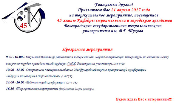 Празднование юбилея кафедры строительства и городского хозяйства (45 лет)