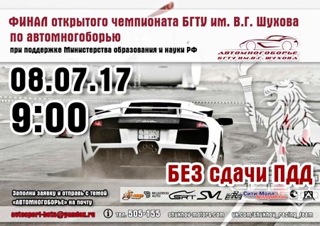 8 июля в 9:00 на площадке ТРК "Сити-Молл Белгородский" состоится финал открытого чемпионата БГТУ им. В.Г. Шухова по автомногоборью.