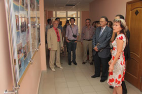 Traditionally, the visitors gave a tribute to V.G Shukhov by laying flowers to his monument. Then the delegation had a tour of the university. With great interest the representatives of the friendly country got familiarized with technical facilities at the department of mechanical equipment. Professor V. Bogdanov, the Dean of the Faculty of technological equipment and complexes told about the unique software, which allows to design the most complicated mechanisms. At the section of nanosystems in building materials science the visitors got detailed information concerning this modern scientific trend, rapidly developing at our university. They were also presented a 3D-model of the campus.