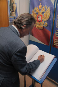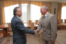 On the same day the visitors met the Chancellor of BSTU, doctor of economic sciences, professor S.N. Glagolev. In the course of the meeting H.E. Diego Jose Tobon Echeverri, on behalf of the delegation extended gratitude for perfect arrangements for the visit and admired the things he had seen in the campus. He also passed an invitation to the ceremony, dedicated to 75-th anniversary since the establishment of diplomatic relations between Colombia and the USSR. The event is scheduled for late June in the Embassy of the Republic of Colombia. The delegation to take part in the event will include a great number of people, rectors of major Colombian universities and will be headed by the Deputy-Minister of Education. The ambassador Extraordinary and Plenipotentiary of Colombia in Russia invited S.N. Glagolev, BSTU Chansellor, to the Colombian Embassy to sign the cooperation agreement in the area of education and student delegation exchange.