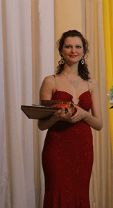 Natalya Naidukova (3rd year at Power Engineering Institute) delighted public with piano playing. She worked up audience the attention and got “Miss Grace” award.