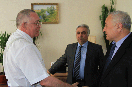 On May 4, our university received the delegation of Kharkov National Academy of Municipal Economy (KNAME): Laboratory Head at KNAME Centre for Distance Learning, vice-rector for research and teaching, Ph.D., associate professor Pan Nikolai Pavlovich, director general of the Kharkiv Center of European education Gritskov Eugine Vladimirovich, Director of the Distance Education Center Veliyev Eldar Ismailovich.