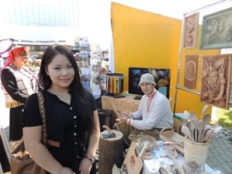The exhibition was striking by its abundance. You could find anything there. The first step was to examine numerous stalls representing the diversity of Russian folk crafts. Doll charms, hats, handmade jewelry, dishes, wooden “matreshka” dolls, flowers made of beads, children’s toys. A master using simple tools was making wooden a carved spoon.