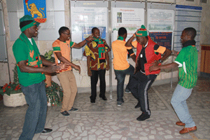 This day Zambian students gathered to celebrate their national holiday at the central entrance of the main academic building of BSTU named after V.G. Shukhov. More than 40 Zambian students are being trained at the University today. The celebration began with the Zambian national dances. National music created the atmosphere of the far-away mysterious African country. Young people organized an exciting exhibition, where they presented household items, gifts, national currency - Kwacha.