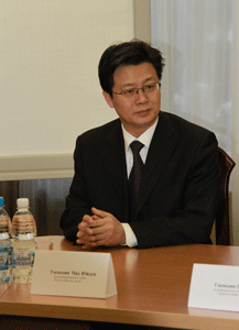 During the meeting with the delegation the first Vice-Chancellor, Prof. N. Shapovalov noted the importance of international exchanges which contribute to development of both Parties, it is especially true for relations with China, with which we have always had good, solid relationship. "Such exchanges of students, academic staff, will bring our mutually beneficial cooperation in a new stage and joint research projects should lead to the strengthening and development of our relations", - said Nikolai Afanasevich.