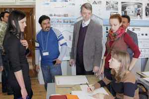 At the Department of Architecture, Deputy Head of Department of Y.M. Kalinin told the guests about the work which is being carried out under the guidance of teachers, students. Great interest was aroused to layouts and projects made by future architects.