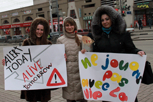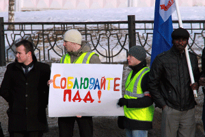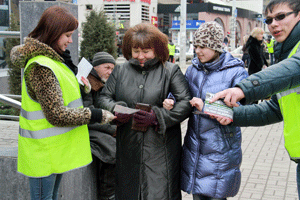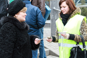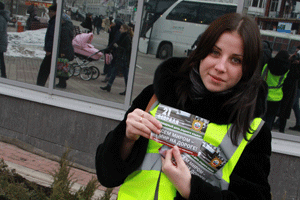 On the same day, a little later, the event continued in the streets. Small groups of young spread out leaflets on the central pedestrian area in the city center, attracting the attention of passers-by by the appeals written in different languages. With the flags of their countries and the relevant attributes of the youth squad the students organized the "chain of road community" standing one next to the other along one of the greatest avenues of Belgorod. Dozens of posters and leaflets in the hands of the students lined up on two parallel roads and promoting road safety, left no one indifferent.
