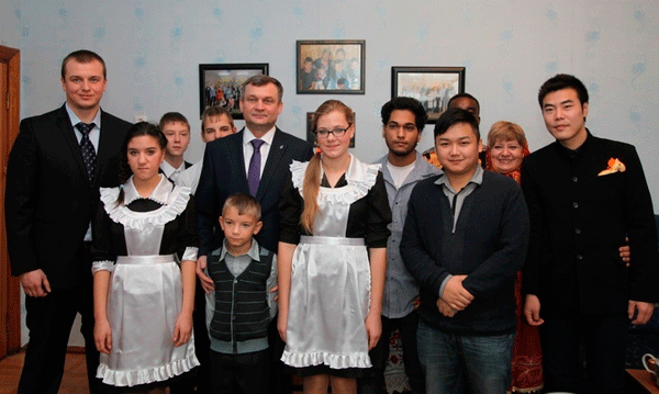 On December 14th head of the Regional Ministry of Internal Affairs V. Pesterev and a representative of Belgorod State Technological University named after V.G. Shukhov, Head of students department at International Center for International Education and Cooperation D.S. Nosachev visited an orphanage in the town of Severny. On International festival " Tea Day " the children were visited not only by their old friends , but also by BSTU international students: Hao Jin Xiang from China, Jonathan Mulenga from Zambia and Naresh Kumar from India.
