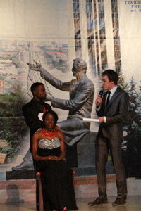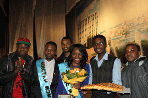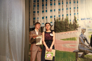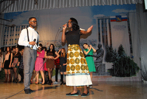 And, finally, the event came to its culminating point. By the decision of the Board of Judges Bogdana Molchanova and Vladislav Jarikov won in the category "Artistry", in the category "Romanticism" Anastasia Zharikova and Vadim Shulga were given their award. Vice Mister and vice Miss title was given to Nellie Karpenko and Eugene Bunin. The most honorable title of "Miss & Mister IEM- 2014" was awarded to students Fatoumata Mukelabai and Clive Piri from Zambia. All the contestants received certificates and prizes from the sponsors: Trade Union Committee of the University, cinema "GrinnFilm" , bowling club «Coctail Bowling Club» and "Comod" café. The prizes were handed over by the chairman of the Board of Judges, a youth specialist Natalia Gaina.