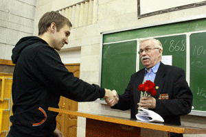The core area in the activity of BSTU museum is given to bringing up the younger generation in the ideas of civil responsibility and patriotic values. This trend was initiated by a retired colonel, Ph.D in history P.F. Ushakov. A former military man, Peter Ushakov, indeed devoted his life to the armed defense of the interests of his homeland, and, after retirement, went on with bringing up the younger generation in the spirit of love to their home country. He used to be a head of the university museum for over 10 years. His slogan "Our concern is to bring up patriots" became the principle of the museum for the following years. Today P.F. Ushakov, being a veteran, finds time to have a talk with students. In January, the whole Russia celebrated the 70th anniversary of breaking the Siege of Leningrad by the Soviet Army. P.F. Ushakov gave a lecture to students on unprecedented mass heroism of people in Leningrad.