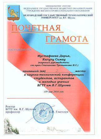 The best students were awarded with diplomas, including student, who made a report jointly - Mustafaeva Daria (Russia) and Simau Albinu Kalulu (Angola), who were given a second degree diploma.