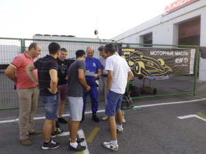 On August 12 the young people came to «Virage» club for training. They booked the carting area in advance. When arrived they were given a uniform and accessories and briefly instructed. Alexander Belousov, director of the Institute wished the team a good luck.