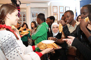 Students of different nationalities holding hands and danced together, played in traditional Russian games and eat delicious pancakes with sour cream. It was a real Pancake week!