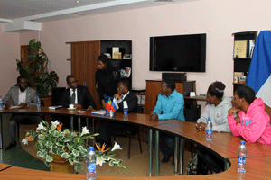 The same day, the Charge d'Affaires, Mr. Collie and Pierre attache Financial Officer Mr. Gilles Viaynon Heafanme met with students from Benin studying at our university.
