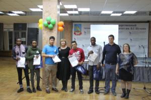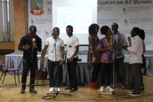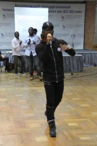 Head of the faculty E.N. Legochkina had a speech and now foreign students of BSTU named after V.G. Shukhov from Cameroon and Egypt share their experience. They remembered how they learned Russian and profile subjects, participated in challenges and won victories at competitions, which brought their dream to become students of our university, and also gave some useful advice to newcomers.