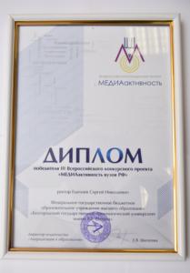 Center for Public Relations of the BSTU named V.G. Shukhov received three diplomas at once: the winner of the III All-Russian competition project "MEDIAactivity of Russian HEIs", "PR-factor 8" - representing the assessment of the university's activity within the framework of this project, and the diploma of the three-time laureate of the All-Russian competition "Press Service of the University" carrying out.