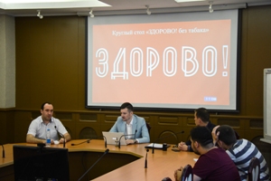 Round table «ZDOROVO! without tobacco» was held at BSTU. «Secrets of manipulation. Tobacco», revealing the secrets of manipulation of public consciousness in the field of tobacco use was demonstrated to participants. Specialist on social work of «Regional addiction treatment clinic» Sergey Sumarokov introduced the measures and methods of work.