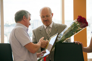 The meeting was opened with a traditional award: a medal for services to BSTU named after V.G. Shukhov of the III degree was awarded to the vice-rector for academic work, assistant professor Vladimir Polyakov.