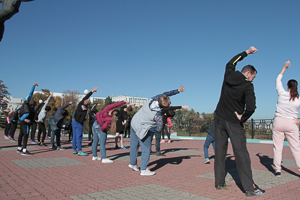 Vice-rector for cultural, educational and social work of BSTU named after V. G. Shukhov Irina Avilova took part at the morning exercises together with students. 30 people attended the event.