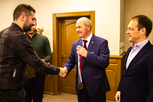 The guests of honor were invited to the meeting: Deputy Head of the Department of Physical Culture and Sports of the Belgorod Region Sergey Dubentsov, Head of the Department of Physical Culture and Sports of the Belgorod City Administration Mikhail Noskov, Deputy Chairman of the Regional Duma Committee on Culture and Sports Alexander Shcheglov.