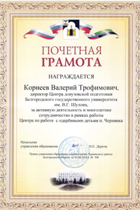 The Department of Education of Chernyansky District noted the contribution of the Center for Pre-University Training at BSTU named after V.G. Shukhov in the development and education of schoolchildren and awarded the director of the center certificate of honor.