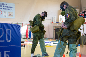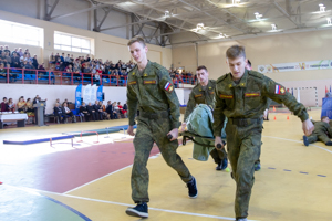 The cadets with dexterity demonstrated a secretive method of movement in battle, throws of grenades, somersaults, fulfilled standards for incomplete disassembly of the machine gun, assembly of the machine gun and skillful possession of weapons. They showed the skill of replenishing ammunition equipment and lightning-vestments in a chemical protection suit, and even demonstrated the group’s withdrawal with fire cover and transportation of a wounded comrade.