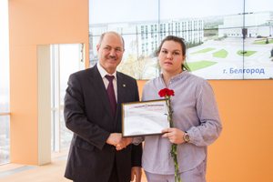 The grateful letter of the Department of Physical Culture and Sports of the Belgorod Region from the rector’s hands was received by Ekaterina Shagayeva, a student of the CTI. She won at the Russian Judo Championship among juniors and juniors under 21. It is noteworthy that the girl started the struggle at the university, only 1.5 years ago, and has already reached such heights.