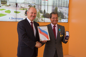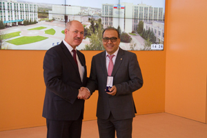 As part of an extraordinary meeting of the Academic Council, the rector of the university presented sculptors from Arab countries with diplomas and medals for services to the university.