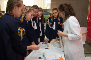 In the hall of the Palace of Children's Creativity an exhibition of scientific achievements “Touch Science” has unfolded. Within its framework, universities and colleges of the region demonstrated scientific achievements, the results of experimental and research activities. Guests of the event got acquainted with the technologies of 3D-modeling and 3D-printing, nanotechnology, developments in the field of robotics.