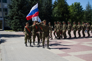The personnel of the military training center was built by platoon on the university square. They have to take an important, fateful step - to utter the words of a solemn oath of allegiance to their state.