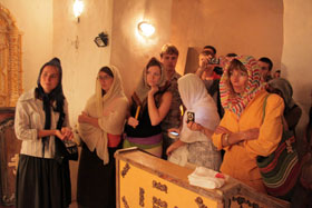 Visiting the monastery, communication with the Father Superior, who told about the history of the monument of spiritual culture, has made an indelible impression on the visitors. The French went down to the cave temple, which the monks had made in the chalky underground layer. It was a dive into the history both literally and the figurative sense. The length of the caves with cells is about 125 meters.