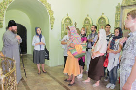 French students taking a summer Russian language course at BSTU had an excursion trip to the Holy Trinity Holkovsky cave monastery as part of their cultural program. The event organizers not accidentally included visits to such places into the program. Anyone who has visited the monastery at least once, will keep unforgettable memories forever. When familiarizing with the cave monastery the foreigners provide insight into the power of the spirit of Russian people, their unbending will and unswerving faith. All these qualities have helped people not to dissolve, to preserve their identity, survive in trouble times of the nomads invasion.