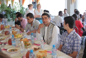 Celebration of the last day of Ramadan, took place in the university canteen. There were students from Turkmenistan, Chad, Yemen, Afghanistan, Palestine and other countries in the hall.