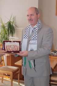 The Chairman of the Association of Foreign Student at Belgorod State Technological University named after V.G. Shukhov Hosni Mahmoud Shakarna Ibrahim, who had been in Moscow on the meeting of students from Palestine, studying in Russia gave S.N. Glagolev a symbol of the country fighting for its independence on behalf of the Ambassador of Palestine. The meeting was held in a friendly atmosphere.