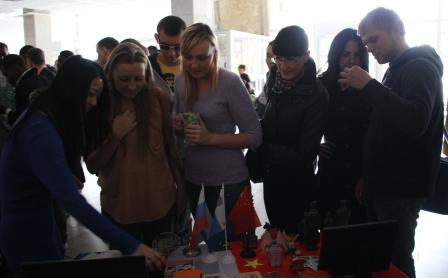 The exhibition was quite successful. Almost every Chinese students took part in it and 14 out of 21 represented their country at the exhibition. Students, members of the academic staff and BSTU employees expressed great interest in the exhibits, the Chinese students, especially to those wearing traditional Chinese clothes. The interested visitors were asking a lot about Chinese culture and history. Many of them, mainly students, were wondering if they could join Chinese language courses and willingly took pictures with the exhibition participants. BSTU press centre took the interview for «Теchnolog» newspaper from Chinese students.