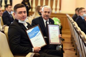 In the oval hall of the regional administration, the Governor of the Belgorod Region Vyacheslav Gladkov awarded the winners of the Sports Olympus award based on the results of 2021. Among the awardees are handball players of the Tekhnolog-Spartak team Igor Neklyudov and Konstantin Vinokur, bronze medalists of the European Handball Championship, the Tekhnolog-Spartak team, which won the title of Russian Handball Champion in 2021, and team coach Sergey Kramskoy. Vyacheslav Vladimirovich introduced the Sports Olympus award for the first time and plans to encourage Belgorod athletes every year, summing up the results of the year.