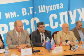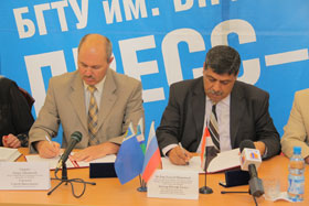 The agreement on establishing a Russian-Arab scientific and technological centre was signed on June 16 at BSTU named after V.G. Shukhov and Public establishment for road communications of Syrian Arab Republic. The content of the agreement was discussed during the press conference in the presence of Dr.Eng.Youssef Hammood, General Manager of Public Establishment For Road Communications, deputy minister of transport of Syrian Arab Republic and Eng. Hassan Ezeddin Abu Khreish, head of office Director General at Public Establishment For Road Communications (Syria). BSTU named after V.G. Shukhov was represented by the Chancellor, doctor of economic sciences, professor S.N. Glagolev and the first vice-chancellor for scientific, innovation and international activity V.S. Lesovik.