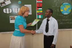 Certificates of Honour were given to students who had excellent marks and took an active part of the university social life during the year. The gifted representatives of friendly countries were singing songs, reciting verses, written by Russian poets, which greatly impressed the audience. Each of 11 groups got a special present: a sweet Russian round bread.